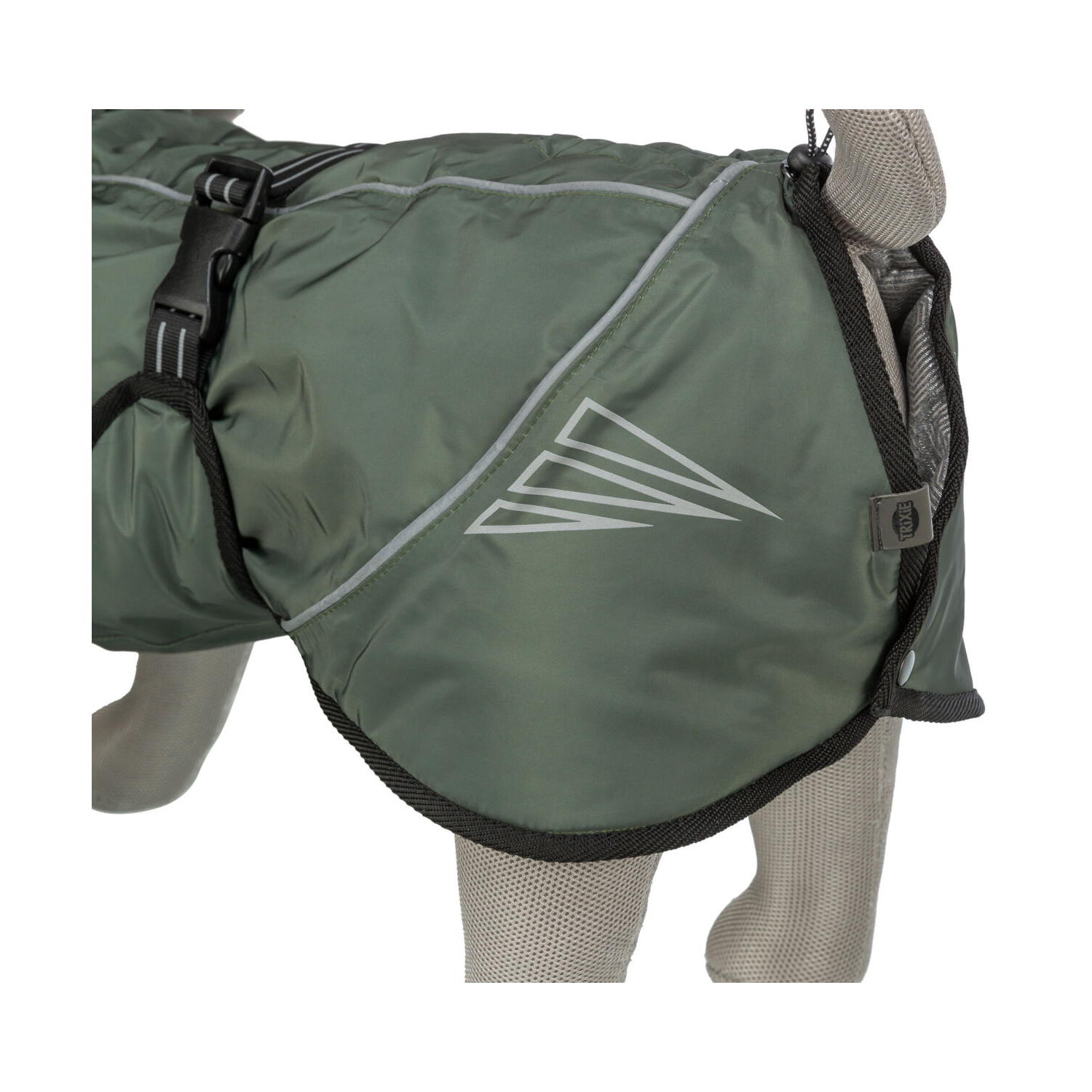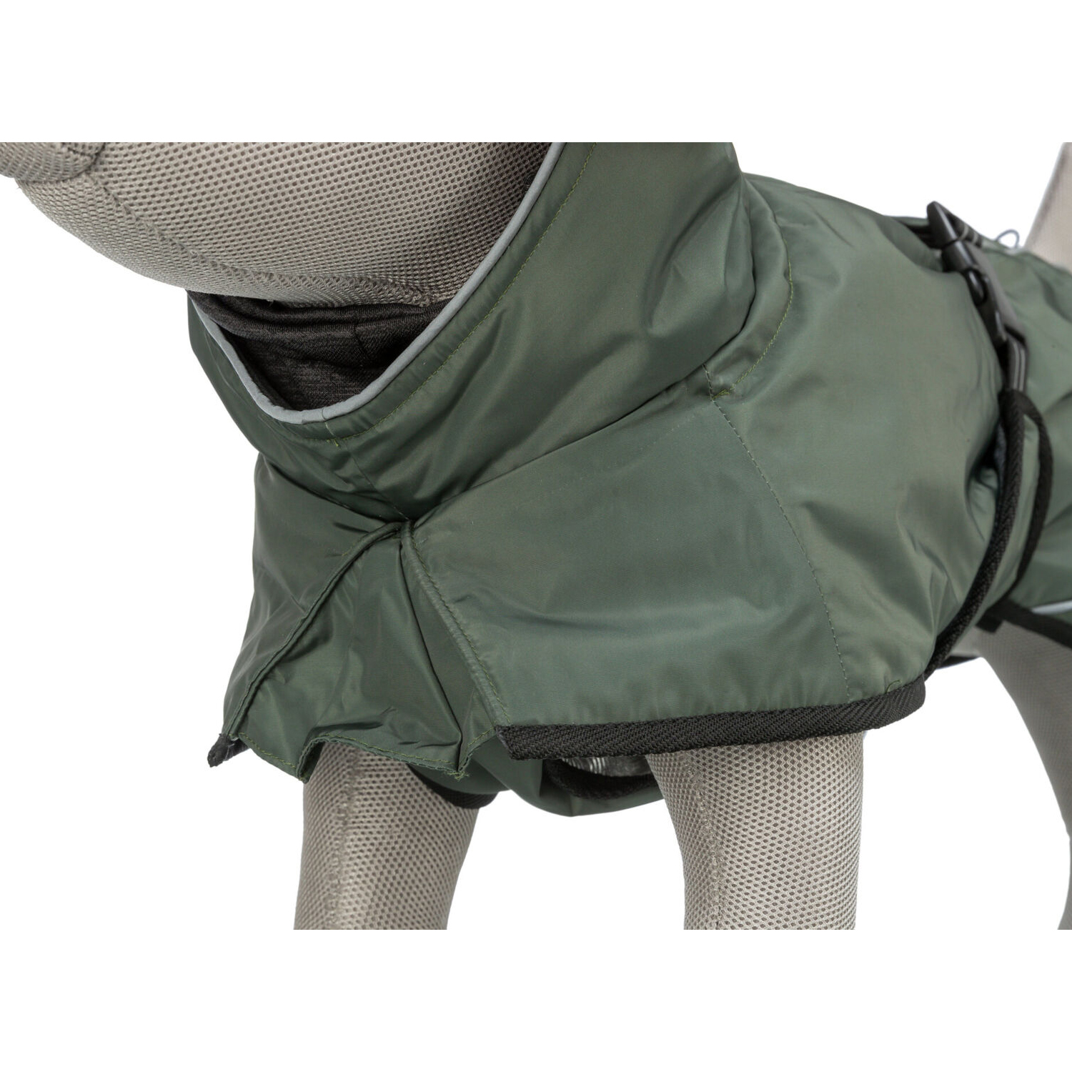 • con botones de presión en los cuartos traseros para una mayor protección contra el frío