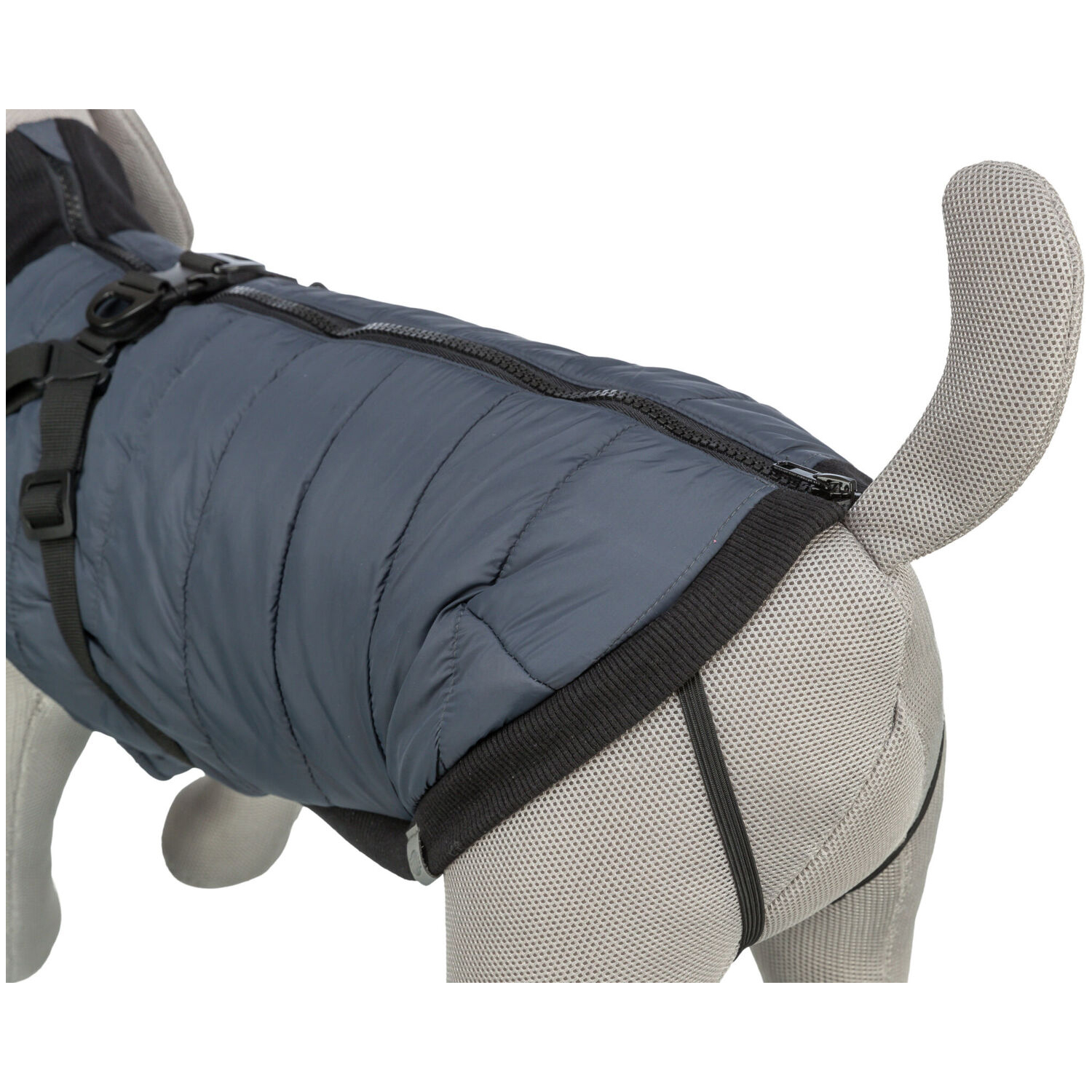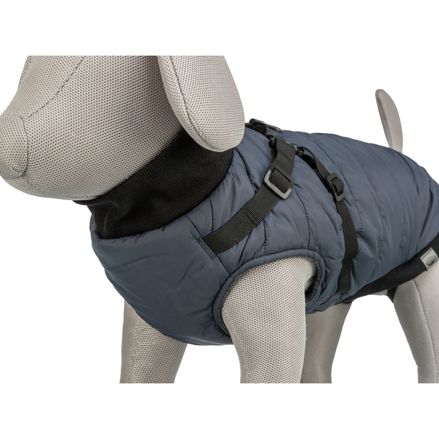 poliéster con forro polar con acolchado ligero con cremallera continua en la espalda elementos reflectantes inserto elástico en la zona abdominal cintas ajustables para las patas traseras