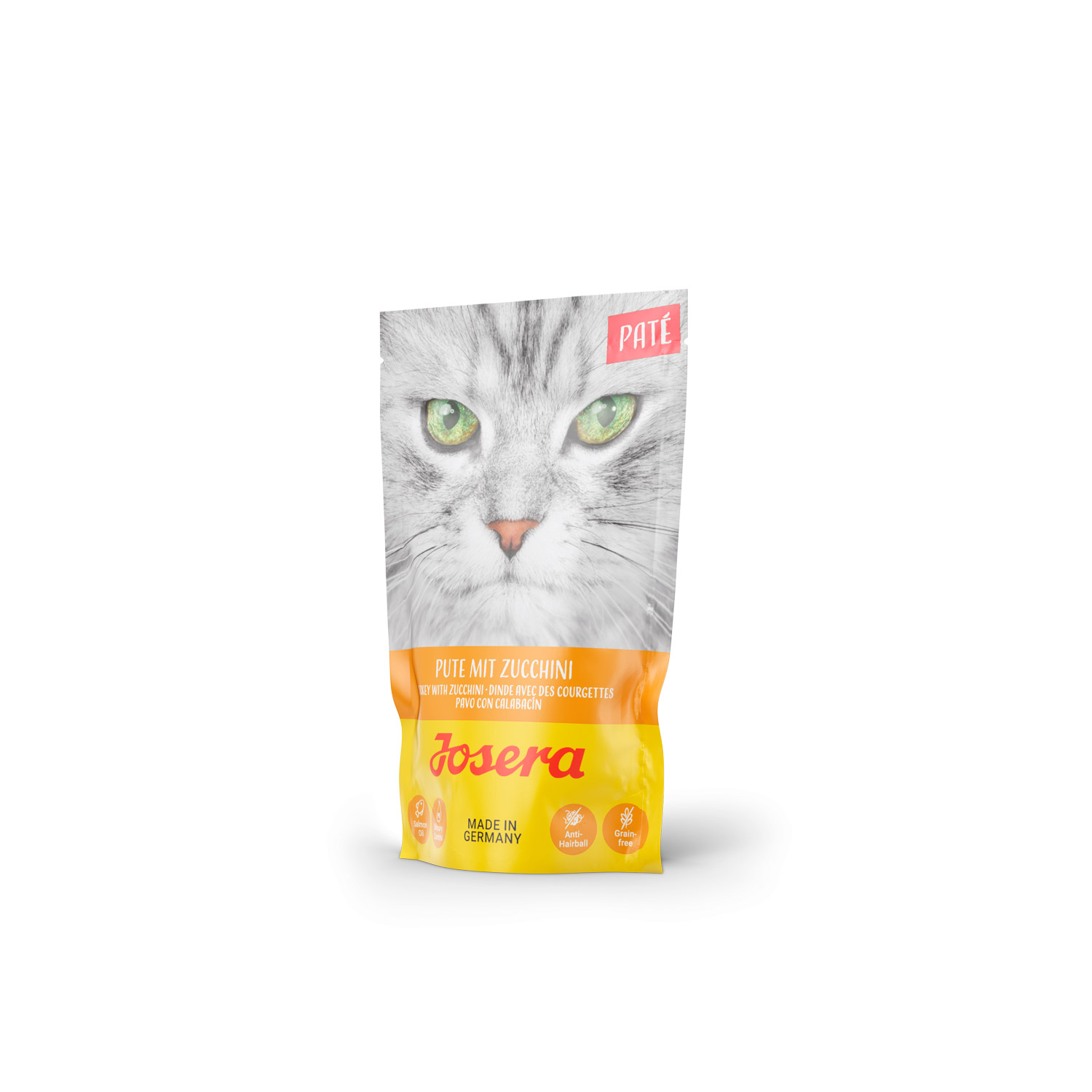 Descubre la nueva gama de alimento húmedo de Josera pensado en los requisitos de tu gato. ¡Josera paté de Pavo con Calabacín! Un alimento completo y saludable, sin cereales, para los paladares más exigentes de los gatos adultos. Con aceite de salmón que aporta valiosos ácidos grasos omega 3 y las vitaminas y los oligoelementos esenciales que favorecen un pelaje sedoso y brillante para los gatos más exquisitos.